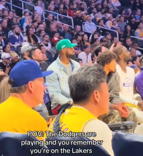 雷速体育10月29日讯 美国媒体Overtime晒出一段昨天湖人比赛期间的视频,因伤缺席比赛的勒布朗被发现在场边一边支持球队一边观看MLB道奇队的世界大赛。