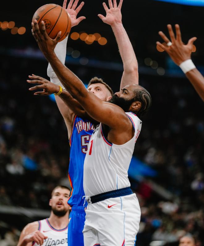 这一个比赛日,快船坐镇主场,迎战西部第一豪取七连胜的卫冕冠军雷霆,本场比赛快船靠着哈登的开局暴走,一度建立起了13分的领先,不过在雷霆发力之后,迅速扭转了局面,最终以126-107击败快船,豪取八连胜。