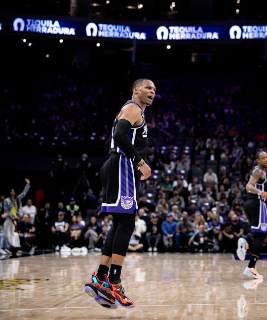 此役文班亚马因伤缺战,让马刺内线防守威慑力断崖式下滑,这也给了国王此战内线双塔小萨博尼斯和德罗赞进攻端大开杀戒的空间,二人上半场就在威少的传球助力下合力砍下了28分,不过威少前两节的失误太多,达到了5次,给了马刺不少反击下快攻的机会,再加上国王防守孱弱,半场战罢带着8分的劣势,回到了中场更衣室。